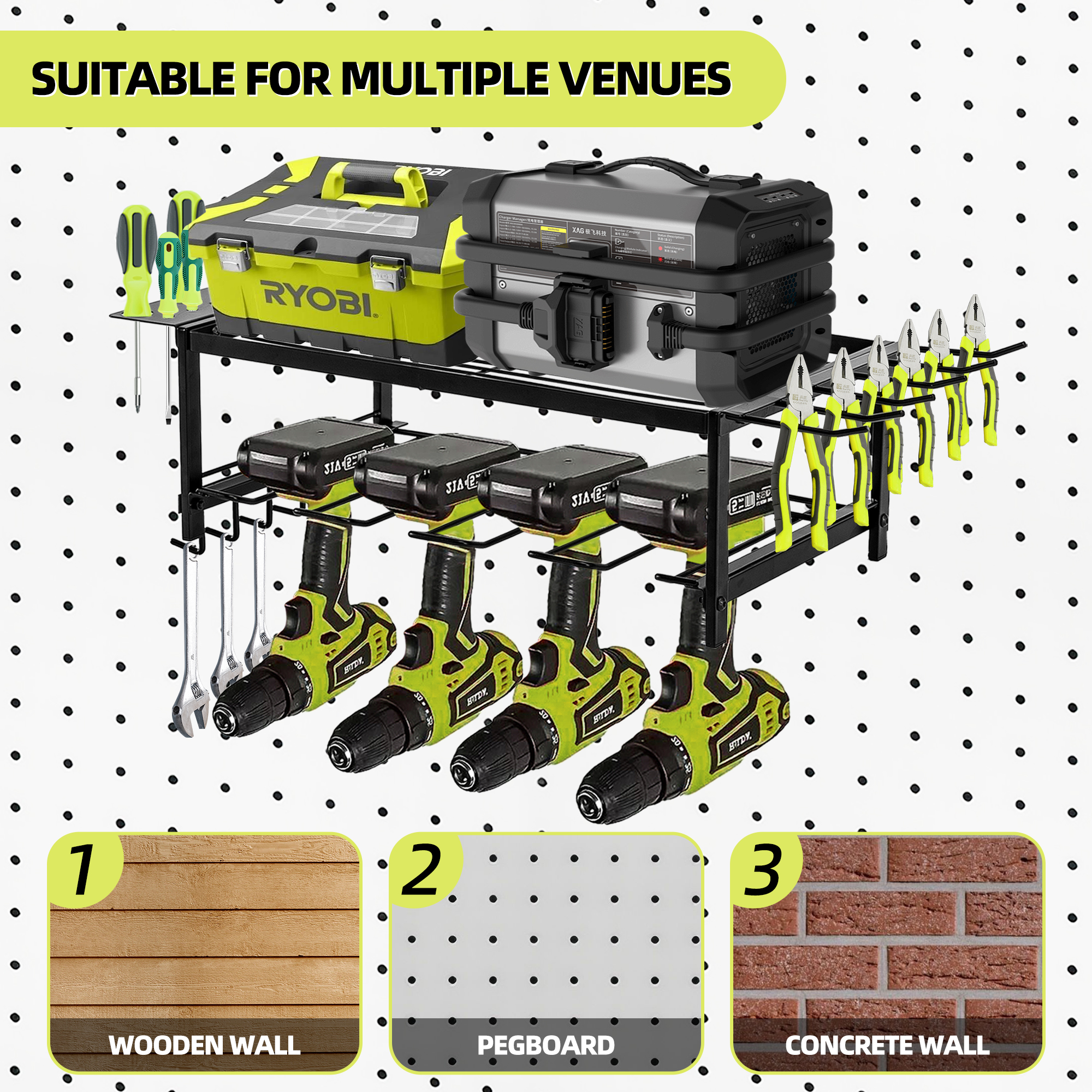 This tool organizer box has made me incredibly satisfied, keeping all my tools neatly organized and in their proper places. Previously, I stuffed all my cordless power tools into a rolling toolbox, but the problem was that tools would always end up piled on top of each other. This made finding tools difficult and wasted time rummaging through everything—like reaching for the drill only to pull out the impact wrench instead. It comes with instructions and all necessary mounting hardware, making installation a breeze. Even without the manual, the installation process is quite intuitive. The surface features a black powder-coated finish, offering a more substantial feel than regular paint, and the overall craftsmanship is excellent. With proper care, it should stand the test of time. I stack