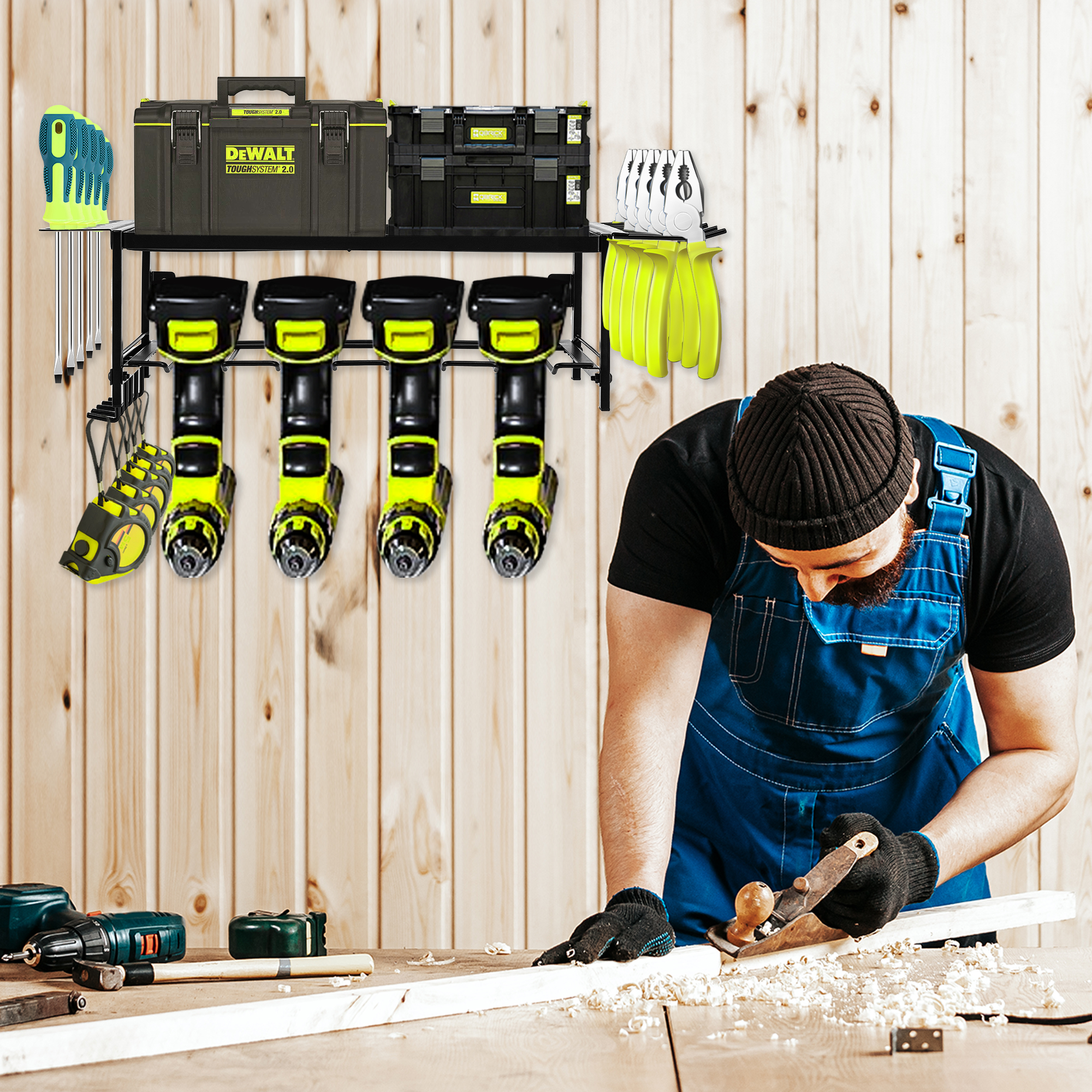 Holds up to 4 electric drills/hammer drills, ideal for compact storage spaces.