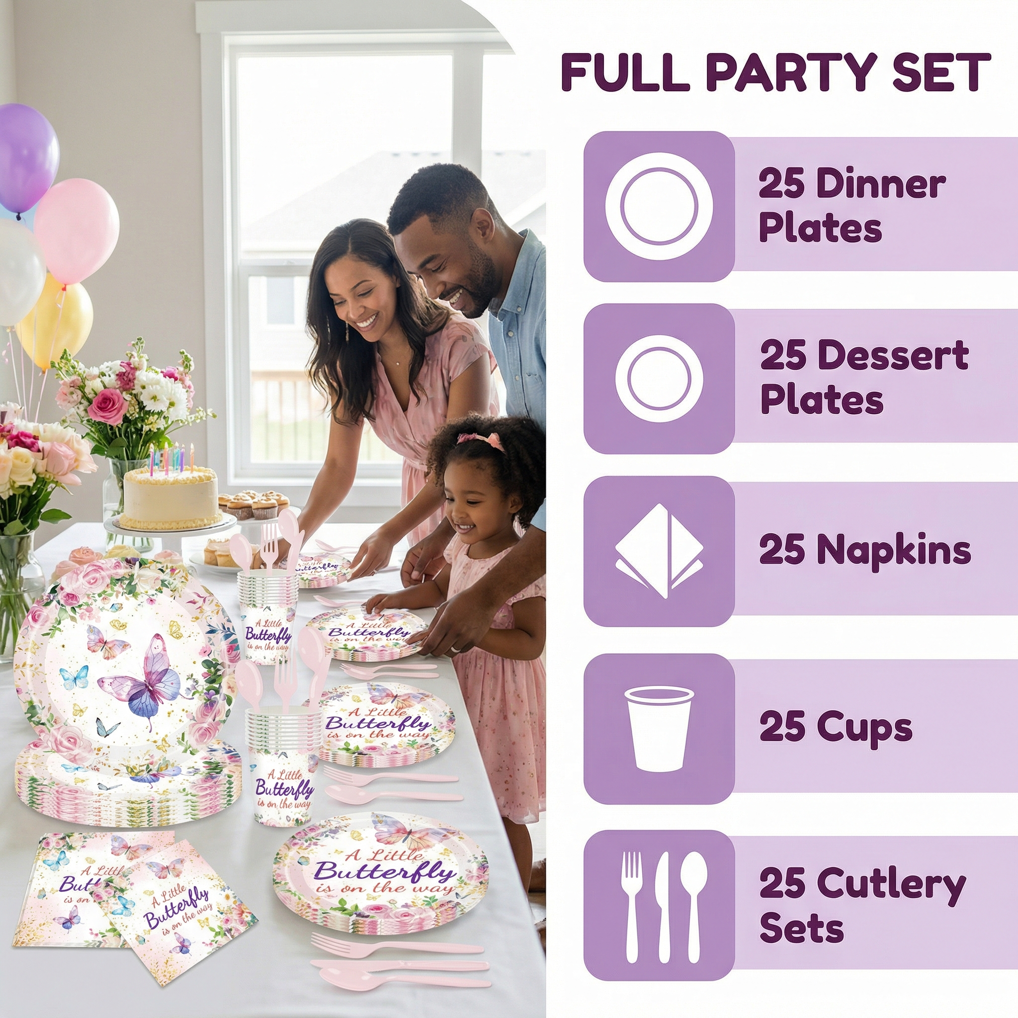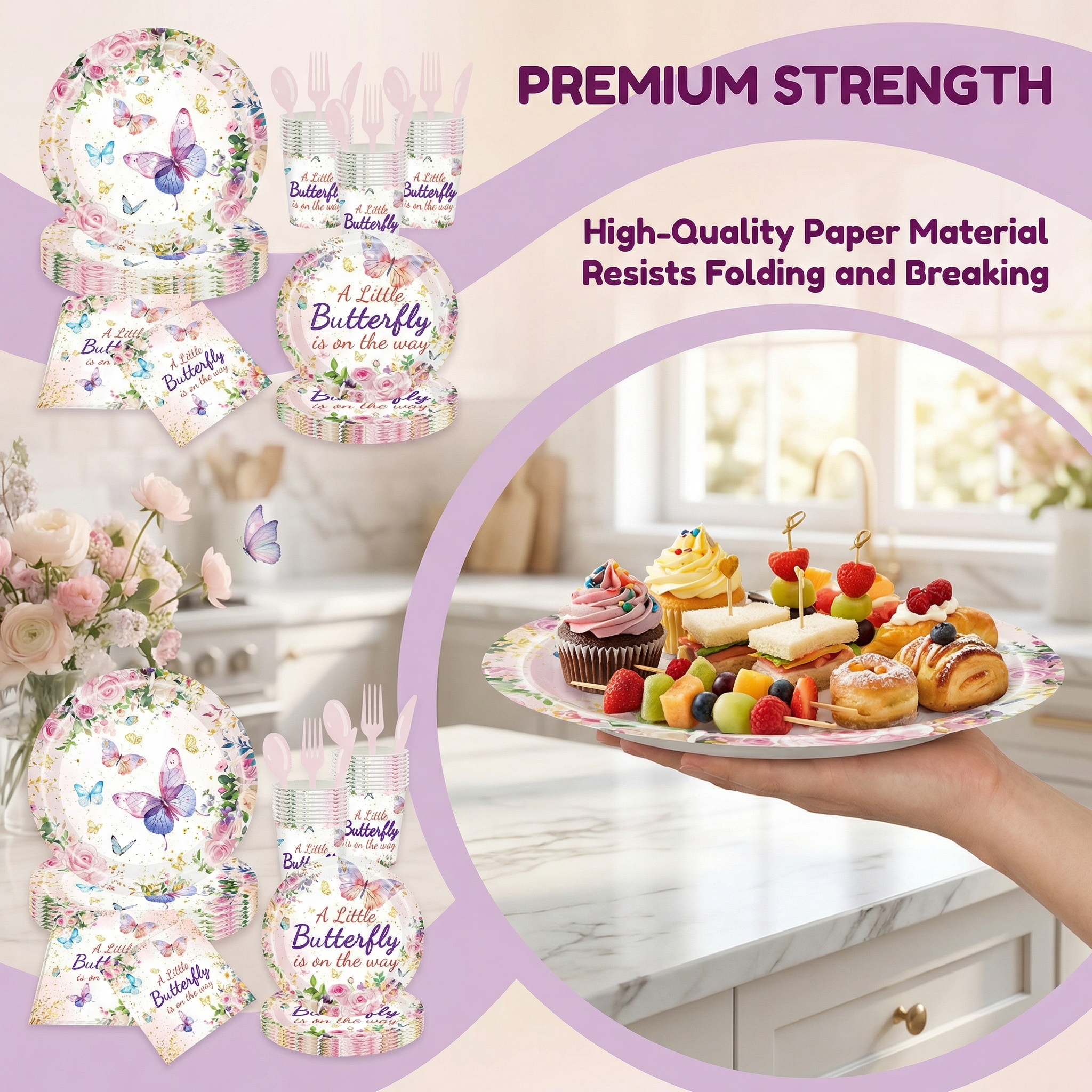 The product perfectly matches the description, including 24 sets of adorable butterfly-themed dinnerware sets. I'm extremely satisfied and highly recommend this great value product.