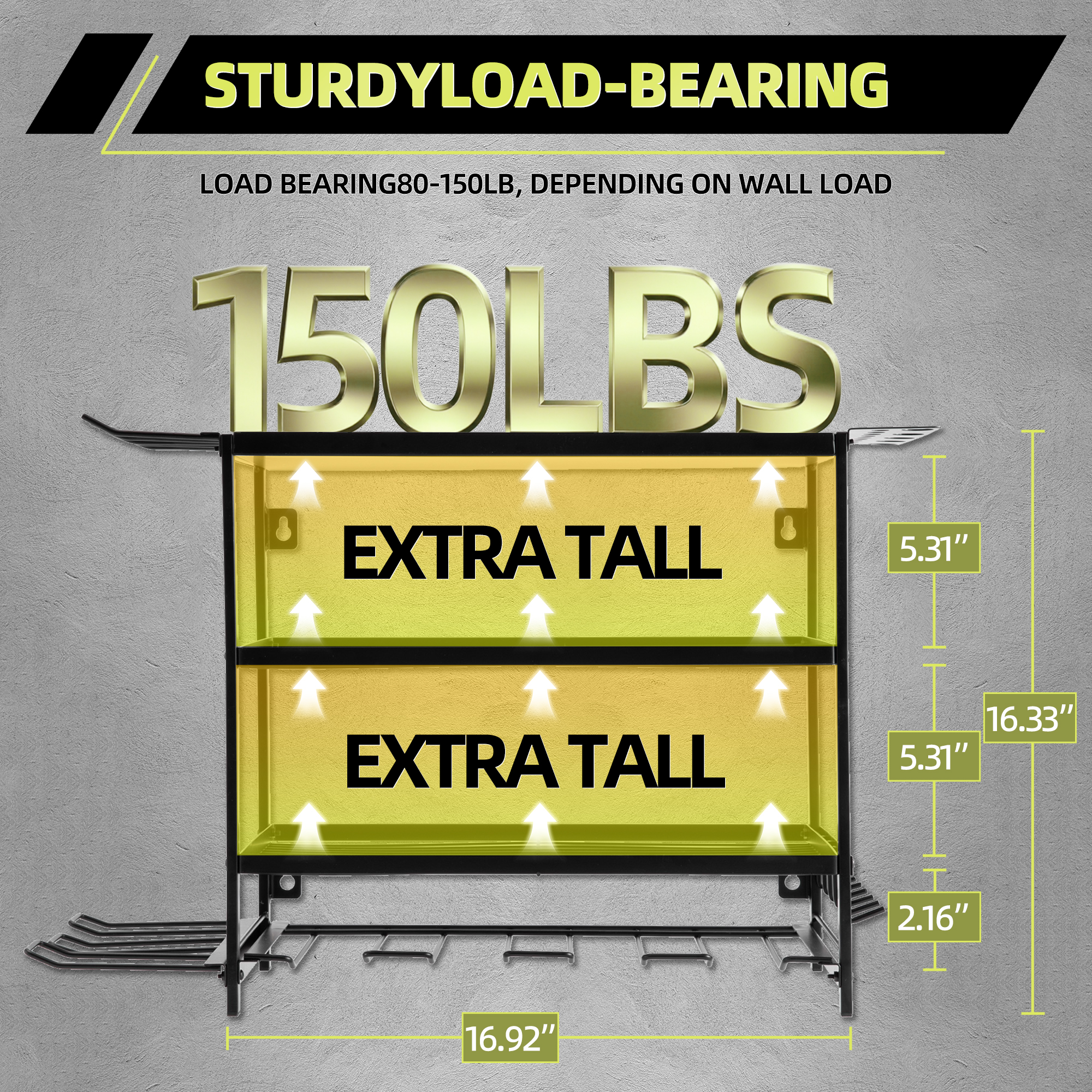 This product has a small footprint and performs perfectly in tight spaces. I've loaded it with heavy items, and it remains rock-solid (I did use self-tapping screws). As for the drill rack—its load capacity is excellent. I placed three electric drills and an impact drill on it, and the rack didn't budge an inch. The only drawback is the insufficient clearance between the drill rack and the upper shelf, which prevents storing drills equipped with 6-8mAh high-capacity batteries. Overall, it's a solid product.