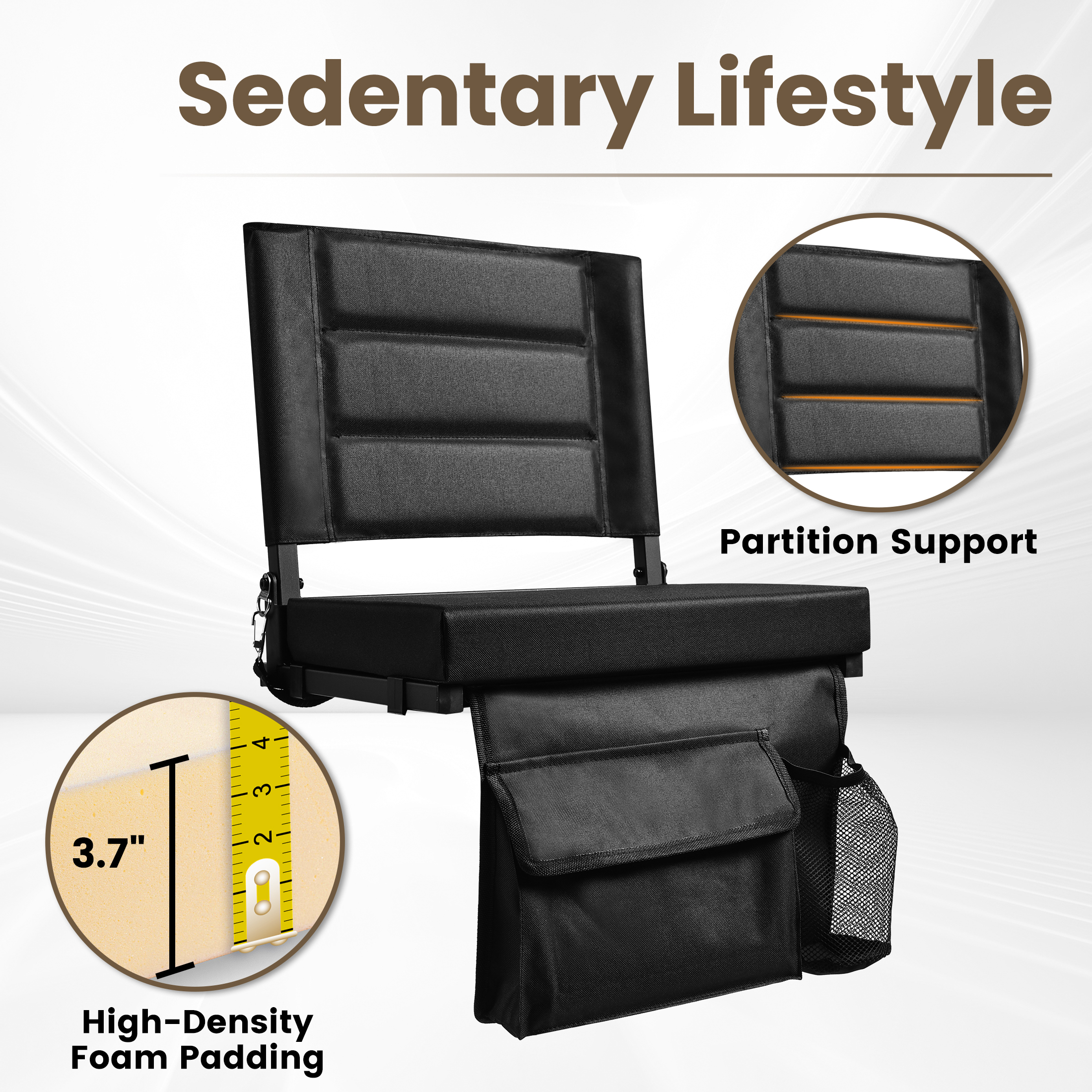 - 【Back Support for Long Sittings】 Soft Foam-Padded Seat Cushions Up To 3.7 Inches Thick For Stadium Seats With Ergonomic Backrest Design Provide Ultimate Comfort And Effective Back Relief For Long Hours Of Watching Games Or Activities.
