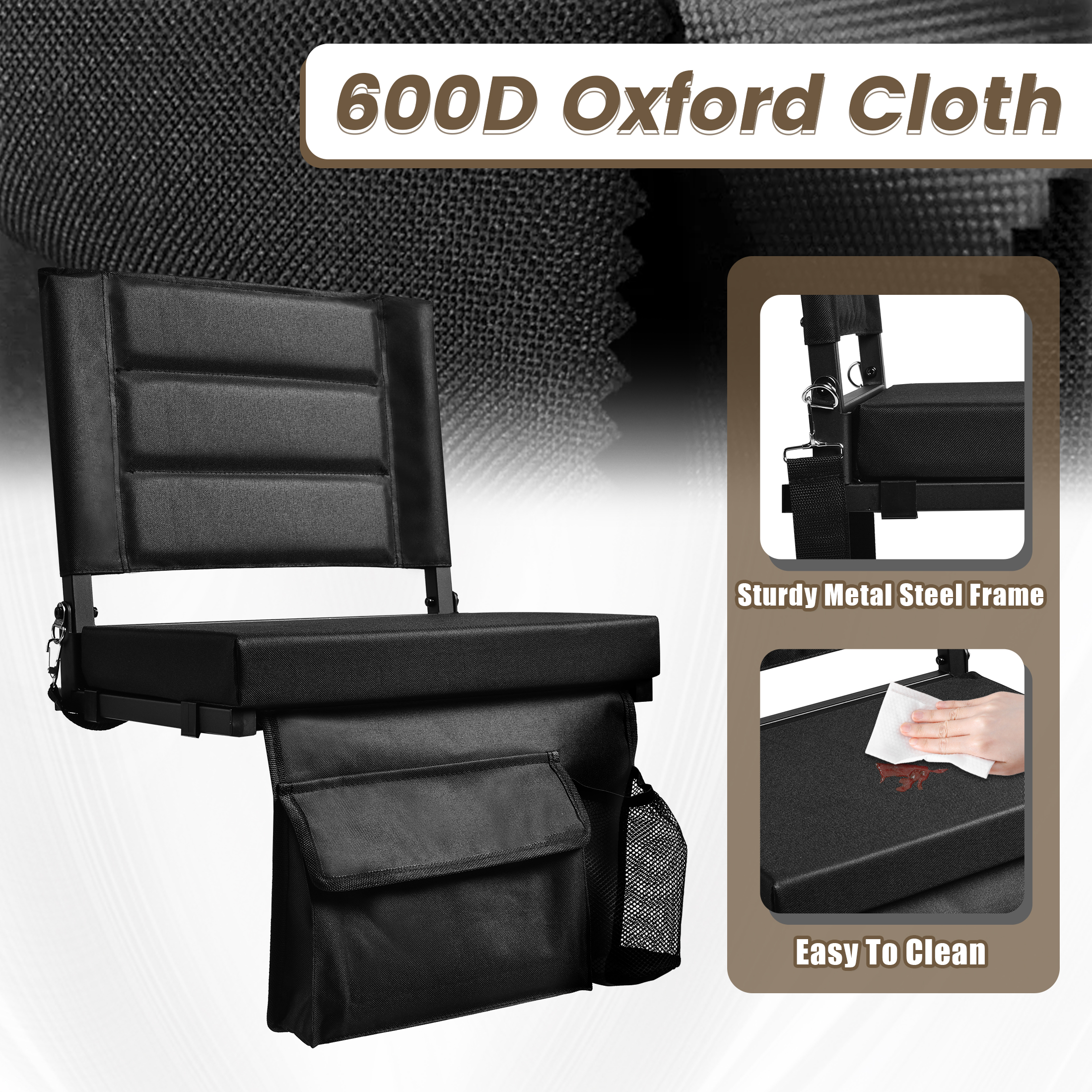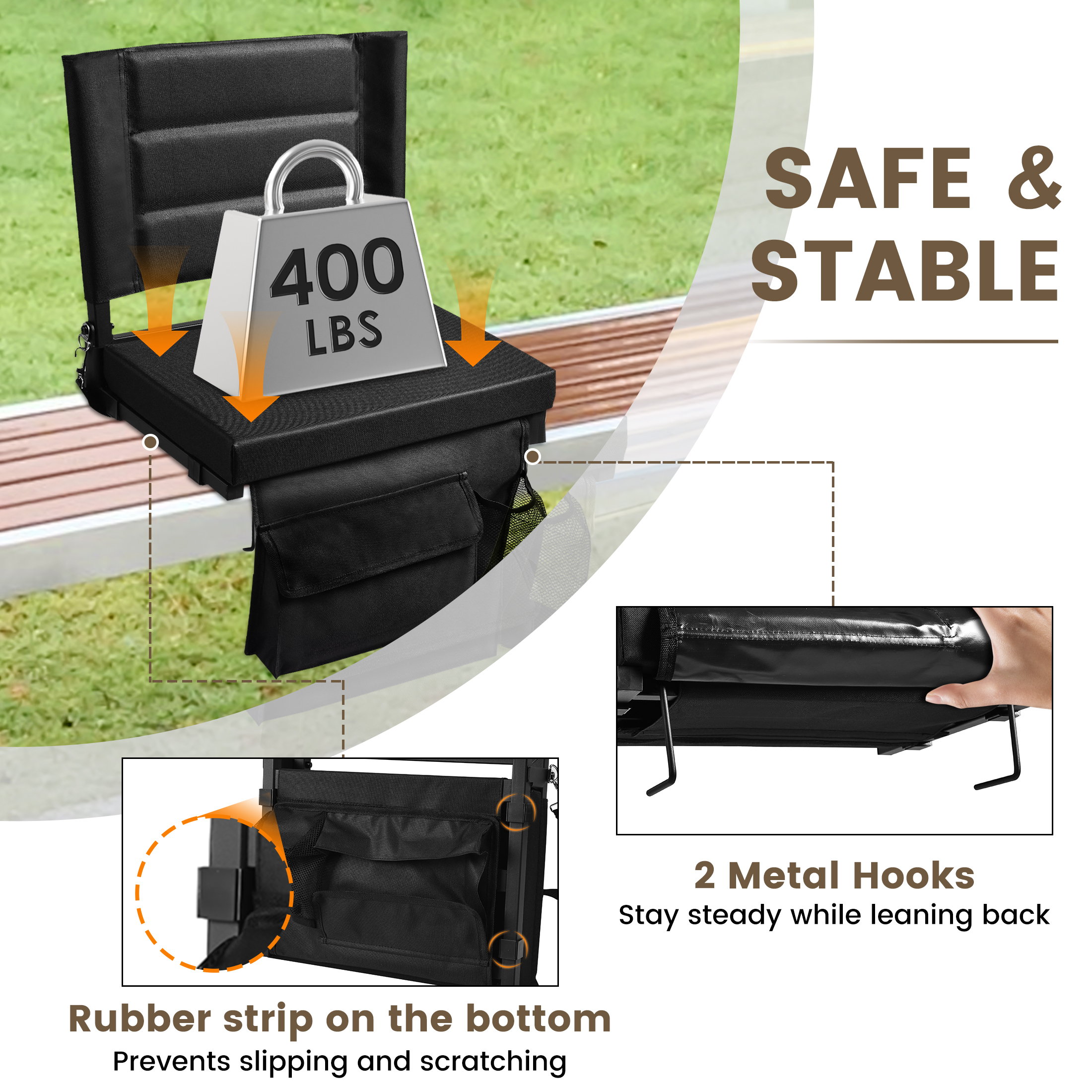 - 【Stable and Safe Design】 The Bottom Of The Stadium Chairs Seat Is Equipped With Non-Slip Rubber Strips And Steel Hooks To Ensure Stability On The Bleachers And Prevent Sliding Or Tilting, So You Can Enjoy Watching The Game Without Worry.